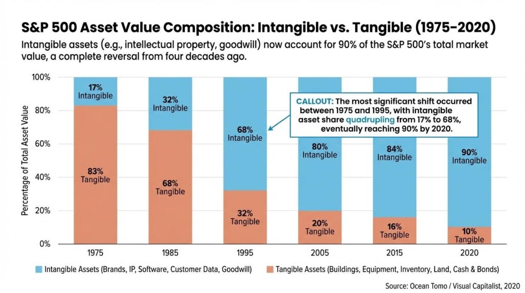 Intangible Assets Grew From 17% to 90% of S&P 500 Value (1975–2020) — Source: Ocean Tomo / Visual Capitalist, 2020