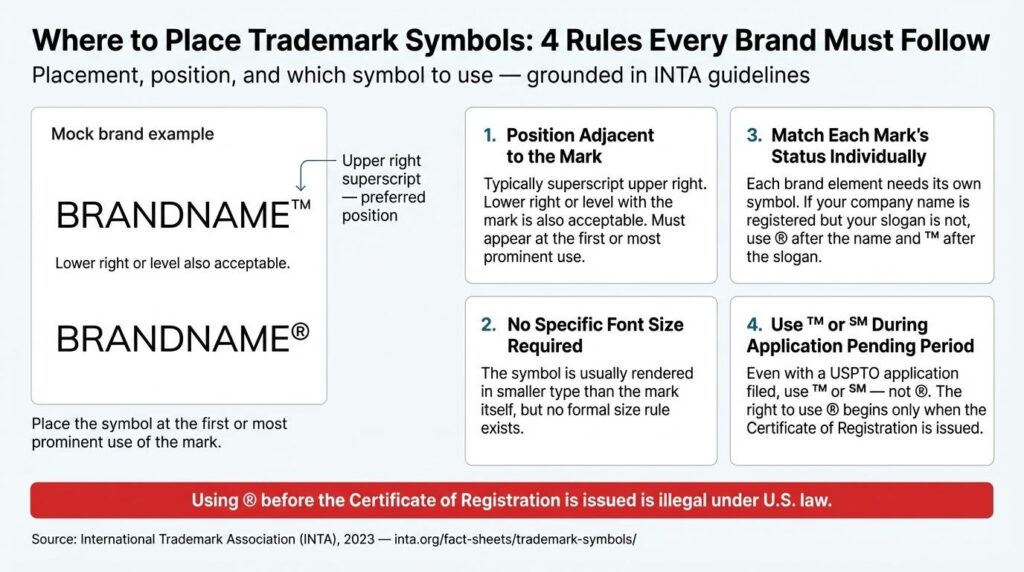 Where to Place Trademark Symbols: 4 Rules Every Brand Must Follow — Source: International Trademark Association (INTA), 2023